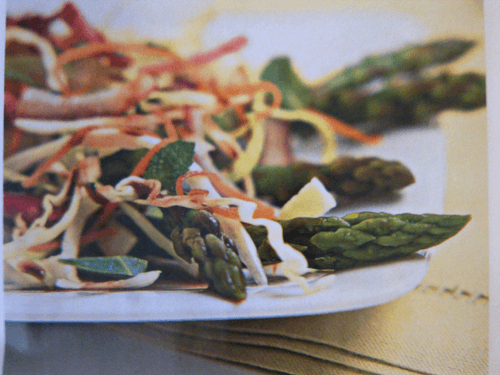 Vegetable salad with asparagus, paprika and daikon