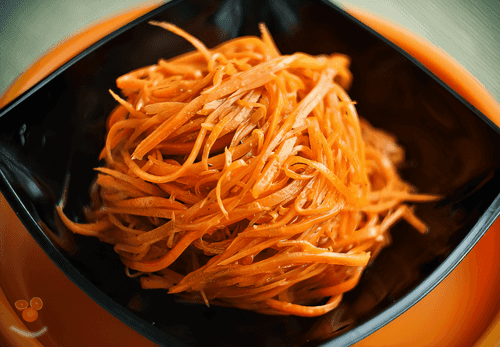 Carrot salad with squid is a refined combination of seafood and crunchy carrots infused with aromatic spices. This recipe is inspired by Korean cuisine, where spicy, flavorful, and balanced tastes create unique gastronomic experiences. Salt-treated carrots gain tenderness, while tender-cooked squid adds a sea freshness. Fragrant onion, garlic, and spices create a rich, spicy flavor, while vinegar adds a pleasant tanginess. This salad pairs perfectly with meat dishes or can serve as a light snack on its own. It can be served at festive tables to surprise guests with an unusual combination of ingredients. Its rich taste and appetizing aroma make it a true decoration of Korean cuisine.