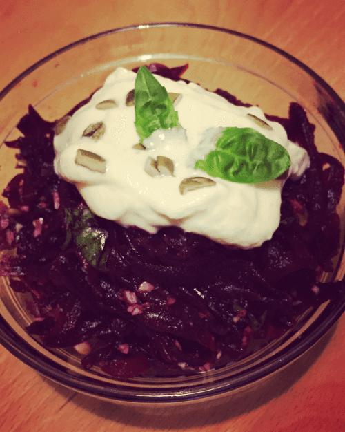 Beetroot salad with pumpkin seeds and Greek yogurt