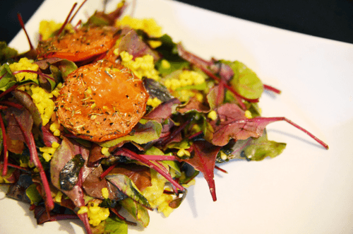 Warm Salad with Swiss Chard, Bulgur, and Baked Tomatoes