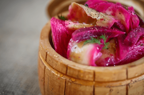 Cabbage in beet marinade is a bright, aromatic dish of Russian cuisine that pairs well with meat and fish dishes and is also perfect for a fasting table. Its roots go back to traditional methods of salting and pickling vegetables when beets were used to give a rich color and sweet undertone to the taste. Crunchy cabbage soaked in a tender sweet-sour beet dressing with hints of garlic and spices achieves a delightful balance of flavor. This dish not only pleases the eye but also has health benefits due to the natural antioxidants in beets. Pickled cabbage is easy and quick to prepare – within a day it reveals all its flavor nuances while remaining fresh and juicy. It can be served as an independent appetizer or as part of salads, adding a pleasant tanginess and rich aroma to the meal.