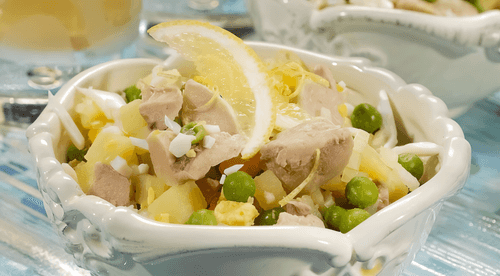 Cod liver salad is a refined dish of European cuisine, infused with tenderness and depth of flavor. This salad originates from northern regions where cod was an important part of the diet. The delicate cod liver combined with velvety potato pieces, refreshing onion, and sweet green peas creates a harmony of tastes. Egg yolks add a creamy texture while vegetable oil enhances the richness of the ingredients. A light tang of lemon and hints of dill make the salad fresh and sophisticated. It can be enjoyed as a standalone dish or as an appetizer perfect for festive tables. This treat combines nutrition and elegance, turning simple ingredients into a true gastronomic masterpiece.