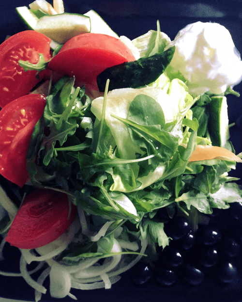 Before use, mix all ingredients carefully. The salad pairs well with freshly squeezed juice or a glass of dry red wine. Enjoy your meal!