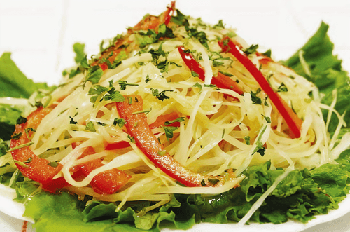 This vibrant salad is a true explosion of flavors and textures! The combination of fresh tomatoes, crunchy cabbage, and spicy green chili peppers adds richness and heat to the dish, while sweet corn softens the spicy accent. Grated cheese adds creaminess, and lime and cilantro make the flavor bright and refreshing. European cuisine is known for its versatility, and this salad is a perfect example: it works as a light appetizer, a side dish for meat, or a standalone meal for those who enjoy lighter fare. Its origin is linked to the trend of mixing fresh vegetables with zesty dressings to create balanced combinations. An ideal choice for a summer dinner or light snack, this salad is filled with vibrant energy and the taste of nature!