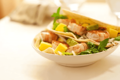 Papaya salad with shrimp is a true embodiment of Pan-Asian cuisine, where freshness meets sophistication. This dish harmoniously combines the sweetness of papaya, the tenderness of shrimp, and the light spiciness of celery. Lemon juice adds a fresh citrus note, while celery salt enriches the flavor, making it robust. Historically, such salads gained popularity in Southeast Asian countries where exotic fruits and seafood are the foundation of culinary culture. Similar dishes are often served as a light summer dinner or refreshing appetizer at festive events. Papaya salad not only delights the palate but also pleases the eye with its vibrant colors, making it a true table decoration.