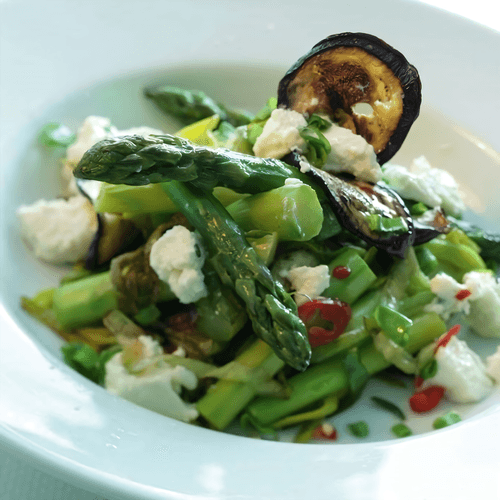 Asparagus, Eggplant and Feta Cheese Salad