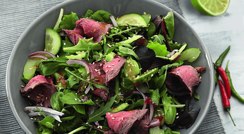 Thai salad with beef marinated in oyster sauce
