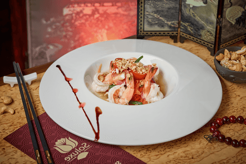 This refreshing pan-Asian salad combines vibrant flavors and an amazing mix of textures. Sweet, juicy papaya, crunchy carrots, and spicy Kenyan beans form the base, while tiger shrimp add sophistication. Cashews provide a light nutty note, and lime juice with fish sauce creates a balance between tartness and saltiness. Chili pepper and garlic add spice, making the flavor rich. This salad is perfect as a standalone dish on a hot day or as part of an Asian dinner complementing seafood and rice dishes. It comes from the gastronomic blend of different cultures in Southeast Asia where fruits and seafood are used to create light yet nutritious dishes. Such a salad can be served as an appetizer or main course delighting with freshness and refinement.