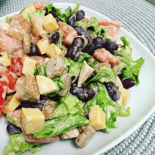 A hearty salad with chicken, cheese, and croutons embodies the coziness of home and the taste of Russian cuisine. Its history goes back to the traditions of simple yet nutritious dishes that provide enjoyment and energy. Tender chicken breast, lightly stewed to softness, harmoniously combines with crispy croutons and fresh vegetables. Hard cheese adds zest while sour cream makes the flavor tender and rich. Red beans bring a rich texture, refreshing each bite of the salad. This salad is perfect as a standalone dish or as an addition to the main menu. It is versatile: light yet nutritious; it can be served for a casual dinner or at a festive table. It is especially delicious when croutons are added just before serving to maintain their crispy texture.