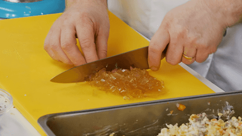 Cut the jelly into small cubes, add to the salad, and mix again.