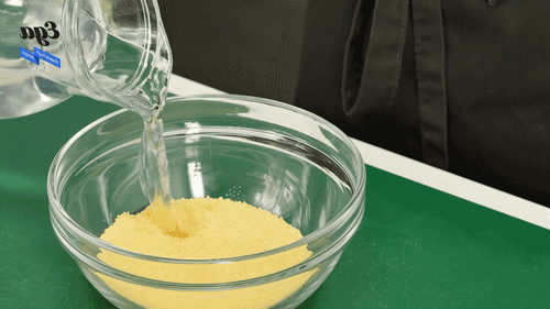 Pour hot water over couscous in a 1:2 ratio, cover, and let it swell.