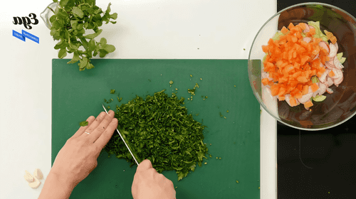 A great way to put together everything that was in the fridge in the summer: couscous and a ton of herbs and vegetables. The olive oil for this salad should be good, take the best example of extra virgin - fragrant and, for example, with a slight bitterness.