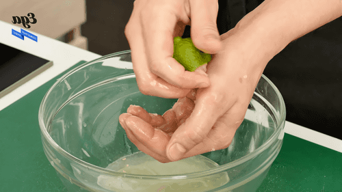 Mix the juice of half a lemon and a whole lime, add cumin, sugar, salt, and pepper, and whisk together.