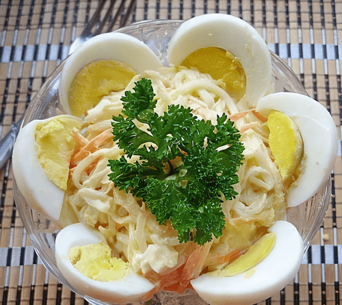 Spring salad with daikon and carrot is a bright and light dish of Japanese cuisine that combines the freshness of vegetables with the rich flavor of the marinade. Daikon, known for its crunchiness and mild bitterness, harmonizes well with the sweetness of carrots and the spiciness of garlic. Marinating daikon and onion adds softness and depth to the salad's flavor, while a dressing made from sour cream, soy sauce, and paprika gives it creamy richness and a hint of spice. This salad is perfect as a standalone dish or as a side to fish and meat. Its fresh, spring character makes it an excellent choice for a light dinner or festive table. The simplicity of preparation and exquisite taste make it popular among lovers of healthy and delicious food.