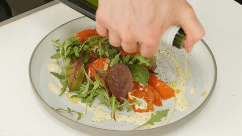 Slightly salt and garnish with a couple of drops of olive oil.
