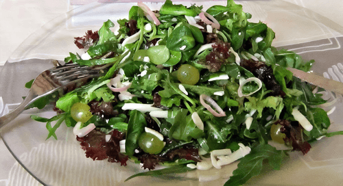 Green salad with grapes and parmesan