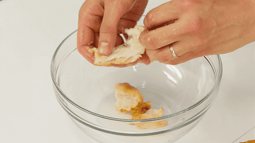 Squeeze the bread with your hands and transfer it to a clean bowl.