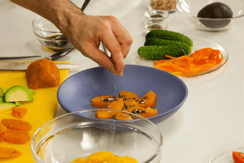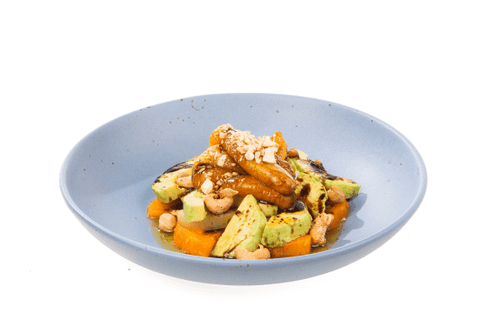 Этот салат — настоящее воплощение средиземноморской гармонии, соединяющей сладость батата, кремовую текстуру авокадо и свежесть болгарского перца. Считается, что сочетание запеченных овощей и фруктов в итальянской кухне пришло из древних времен, когда люди ценили простоту и пользу продуктов. Легкая кислинка киви и лимонного сока придаёт блюду изысканную свежесть, а кешью добавляет хрустящую текстуру. Бальзамическая заправка подчеркивает глубину вкусов, делая этот салат идеальным дополнением к основному блюду или самостоятельным лёгким угощением. Он не только красив, но и богат витаминами, идеально подходит для лёгкого ужина или праздничного застолья. Приготовленный с любовью, он согреет душу и подарит радость вкуса.