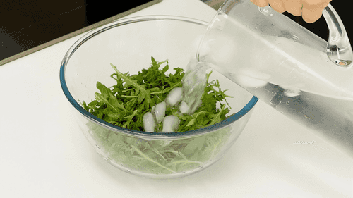 Soak the arugula in cold water and leave it for 10 minutes.