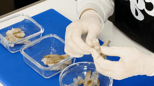 Fry the shrimp in a small amount of olive oil for 1.5 minutes on one side, then flip and fry for another 30 seconds.