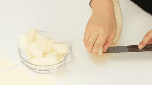 Cut the watermelon and melon randomly.