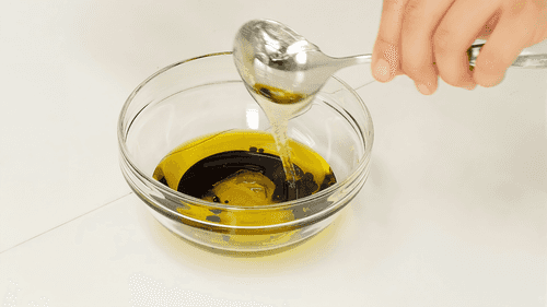 Mix 70 ml of oil, balsamic vinegar, honey, and salt.