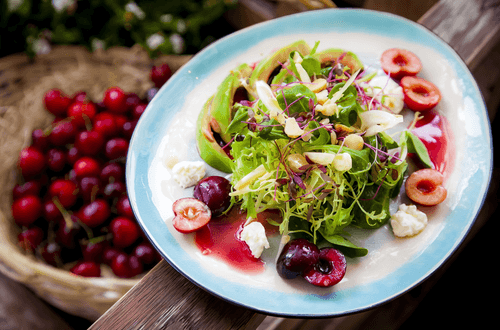 Crispy Lettuce Leaves with Cherries and Macadamia