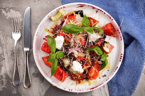 Watermelon salad with feta is an extraordinary combination of freshness and spiciness that evokes sunny Italian summer days. The watermelon provides juiciness and sweetness that contrasts with the salty feta, creating a harmony of flavors. Fragrant basil and the heat of chili pepper add spicy notes, while red onion and celery contribute a light crunch. Balsamic cream and sesame oil give the salad noble depth and completeness. This salad is perfect for summer picnics, light dinners, or as a refreshing side dish to main courses. Italians love to experiment with simple ingredients, and this recipe is a vivid example of how culinary art transforms familiar products into true gastronomic masterpieces.