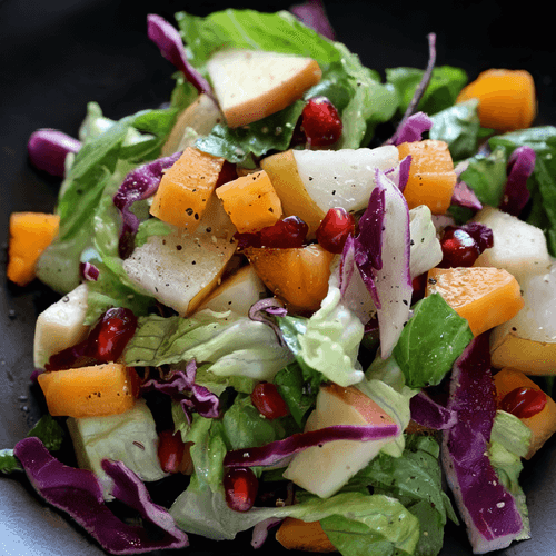 Chopped winter salad is a vibrant embodiment of Russian cuisine, combining freshness and rich flavors. The mix of crunchy cabbage, juicy pomegranate, sweet pear, and apple creates a harmony of textures and aromas, complemented by a spicy dressing of honey, red wine vinegar, and spices. Hazelnuts add a note of nutty depth, giving the salad special richness. The history of such a salad roots back to the tradition of winter dishes that used available seasonal ingredients capable of retaining their freshness even in cold months. This dish is perfect as a light dinner or as an accompaniment to meat and fish dishes or festive appetizers. Its balance of sweetness, acidity, and nutty notes makes it an indispensable element of winter feasts, filling the meal with warmth and coziness.