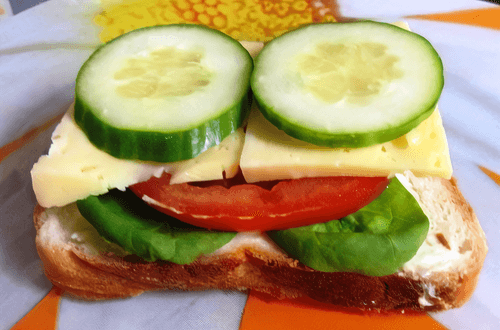 A sandwich with cheese and tomato or cucumber is a simple yet elegant dish of Russian cuisine that embodies the harmony of flavors and textures. Tender white bread soaked in butter creates a soft base, while fresh lettuce adds juiciness and crunch. The main highlight is the cheese—its rich flavor perfectly complements the sweet tang of the tomato or the refreshing lightness of the cucumber. This sandwich is a versatile snack suitable for a light breakfast or a quick bite during the day. It is easy to prepare and surprises with its balanced simplicity, leaving a feeling of freshness and satisfaction after each bite.