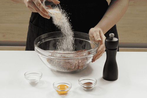 Combine the minced meat with breadcrumbs. Add salt, pepper, cinnamon, and egg yolk. Mix thoroughly.