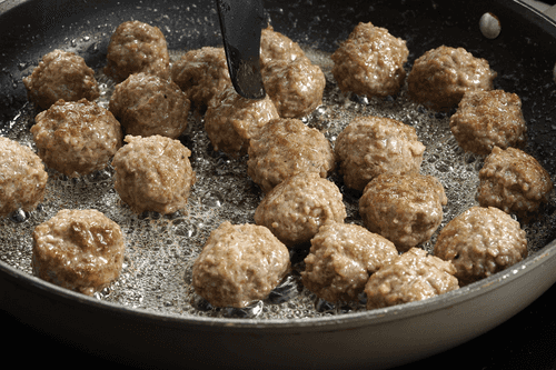 Fry the meatballs in olive oil until a caramel crust forms. Cover with a lid and let it sit for about 5 minutes.