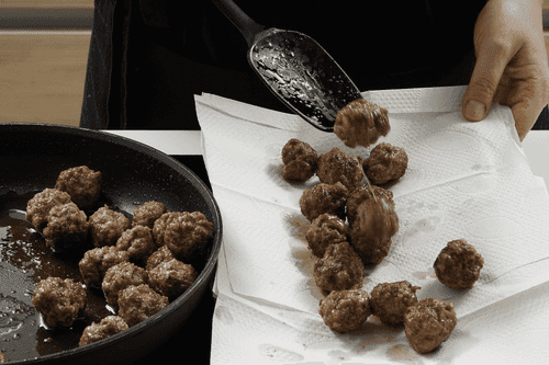 Place the meatballs on a paper towel to drain excess fat.