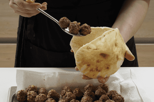 Put several meatballs in the pita.