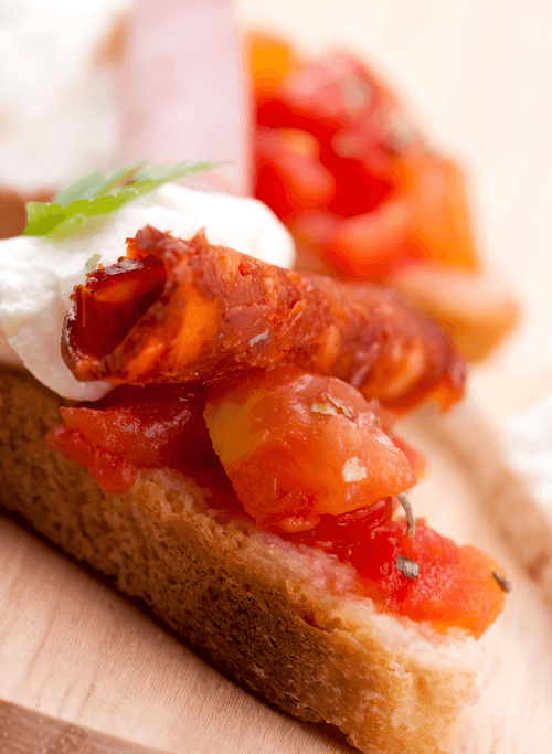 Canapé with cheese, tomato, and bacon is an exquisite appetizer combining a crispy base, the creamy tenderness of cheese, the freshness of tomatoes, and the spiciness of bacon. This recipe is inspired by the European tradition of small but flavor-rich dishes. Bread soaked in butter becomes the perfect platform for melted cheese and baked bacon that acquires a crispy texture. Such a canapé perfectly complements wine evenings or festive tables, impressing guests with a harmony of flavors. It can be served as an independent appetizer or combined with salads and light side dishes. Served hot, it reveals the full depth of aroma from each ingredient.