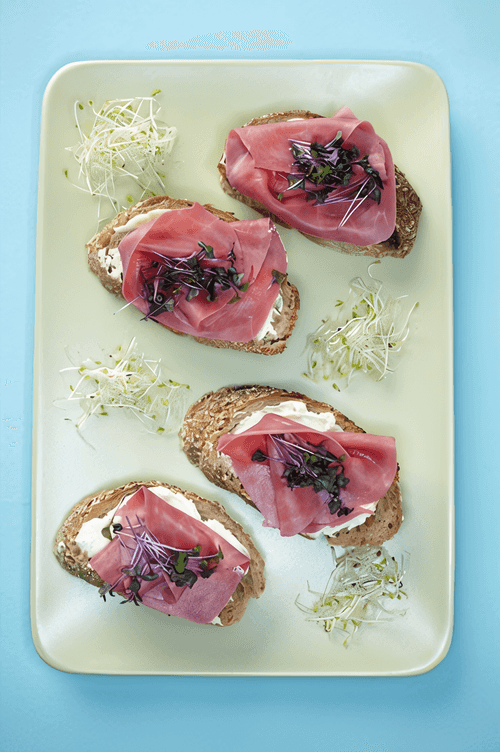 Place a slice of ham on the bread - the canapé is ready.