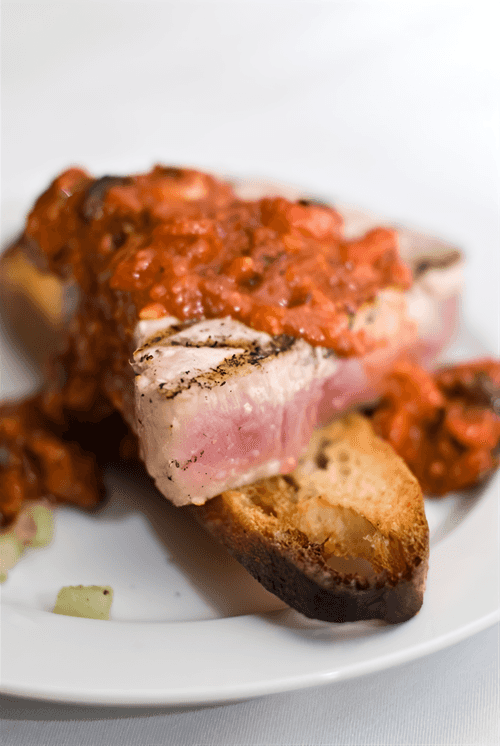 To prepare the seasoning, heat a tablespoon of olive oil in a pan and sauté finely chopped garlic for about a minute. Transfer to a blender, add another tablespoon of oil, chopped tomatoes, tomato puree, balsamic vinegar, and Tabasco. Blend, then add salt and pepper to taste.