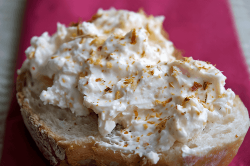 Mix cottage cheese with cinnamon, powdered sugar, sour cream, and apple puree.