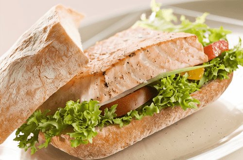 Grilled salmon sandwich is an elegant combination of exquisite flavors and healthy ingredients. Its roots lie in modern European cuisine, where freshness and simplicity meet gastronomic art. Tender, juicy salmon fillet infused with Cajun spices gains an appetizing crispy crust on the grill. Avocado turned into a creamy blend with mayonnaise adds a silky texture and light creaminess to the dish. Arugula adds a spicy bitterness while cherry tomatoes and red onion provide refreshing juiciness. The whole grain bun serves as the perfect base for this harmonious ensemble. This sandwich is not just a snack but a complete gastronomic delight suitable for cozy home evenings or a light yet sophisticated outdoor bite.