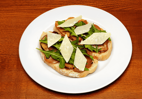 Bruschetta with porcini mushrooms and arugula