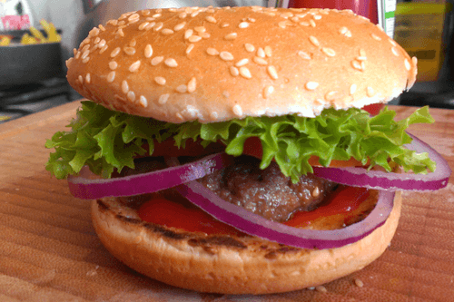 Beef burger with honey chili sauce