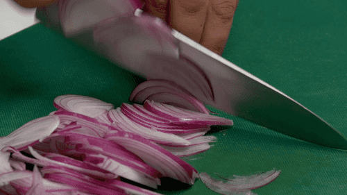 Slice the red onion into thin strips.