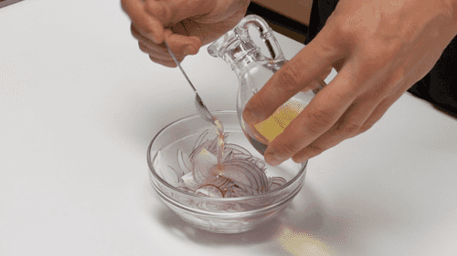 Marinate the onion with salt and sugar in wine vinegar.