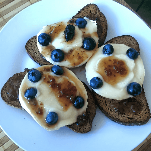 Toast with brie, apples, and fresh berries is a refined combination of flavors born in European cuisine. The delicate creamy brie cheese melts on hot toasted bread, creating a soft texture that perfectly contrasts with the crispy slices of fresh apple. Sweet berries add juiciness and freshness, while the jam completes the composition with a light fruity sweetness. This recipe is a great choice for a morning breakfast or a light snack that can provide a sense of gastronomic pleasure and aristocratic charm. It pairs perfectly with a cup of aromatic tea or coffee.