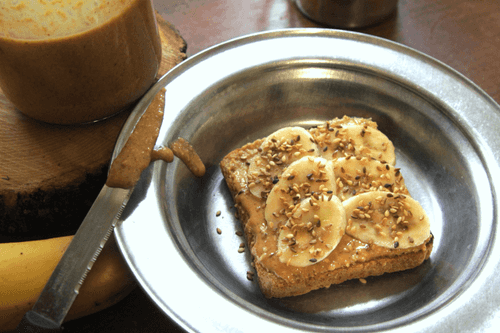 Peanut butter, banana and sesame toast