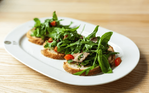 Bruschetta with roast beef and sun-dried tomatoes is an elegant and rich flavor combination of Italian cuisine. Bruschetta, a traditional appetizer from Central Italy, originated as a way to use stale bread by reviving it with the aroma of olive oil and rich toppings. Here, whole grain bread is enriched with the sweet-sour taste of sun-dried tomatoes, the tenderness of roast beef, and the freshness of greens. This bruschetta is perfect for festive buffets, romantic dinners, or simply as a refined snack. The contrast of textures – crispy bread, juicy roast beef, and soft tomatoes – creates balanced enjoyment with every bite. Easy to prepare, it will be a true centerpiece on the table, highlighting the Italian art of gastronomic simplicity and sophistication.