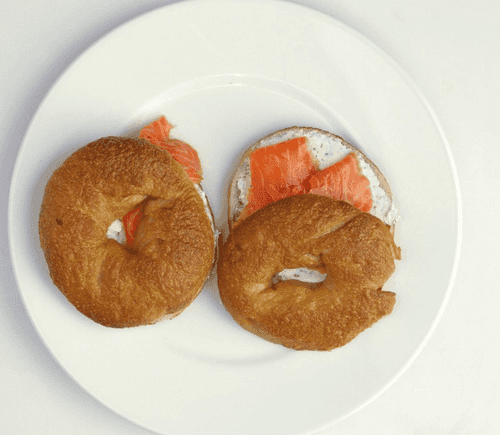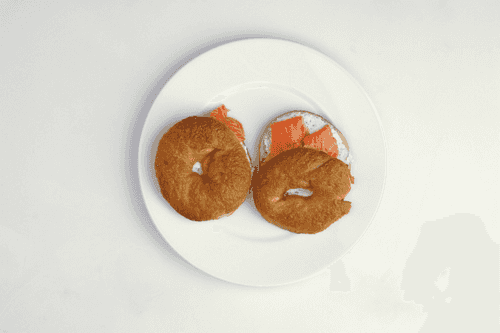 Let cool for 30 minutes. Cut the bagels in half, spread each half with cream cheese, and top with a slice of salmon.