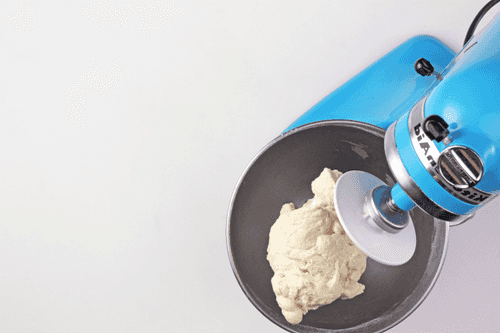 Continue mixing the dough in the mixer on low speed for another 3 minutes. If desired, you can transfer the dough to a lightly floured surface and knead it by hand instead of using the mixer to make the dough more uniform and start forming gluten. If the dough is sticky, add a little more flour.