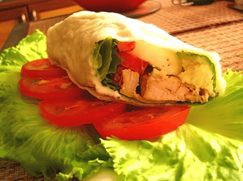 Spoon the mixture into the slit pita or the center of the lavash. Roll up the lavash.