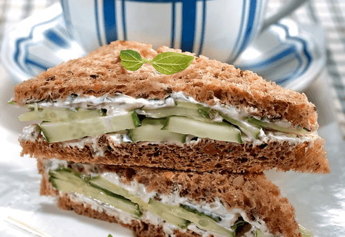 English cucumber sandwiches are a classic of British cuisine, symbolizing sophistication and traditional tea time. Their history dates back to the Victorian era when light and elegant snacks became an integral part of afternoon tea. These sandwiches have a fresh, soft taste due to the combination of butter, cream cheese, and thinly sliced cucumbers. Mint leaves add a light spiciness and aroma. They are perfect as an exquisite snack for tea or a light bite on a summer day. Thin crustless slices of bread soaked in delicate filling make them an elegant and harmonious treat. Due to their simplicity in preparation, they remain a favorite choice for those wanting to enjoy traditional British flavor without hassle.